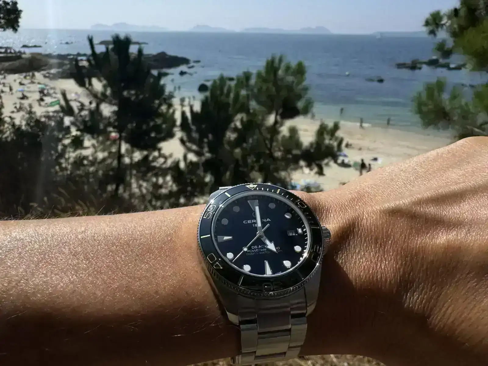 Por si aceptáis barco, con las Islas Cíes de fondo.