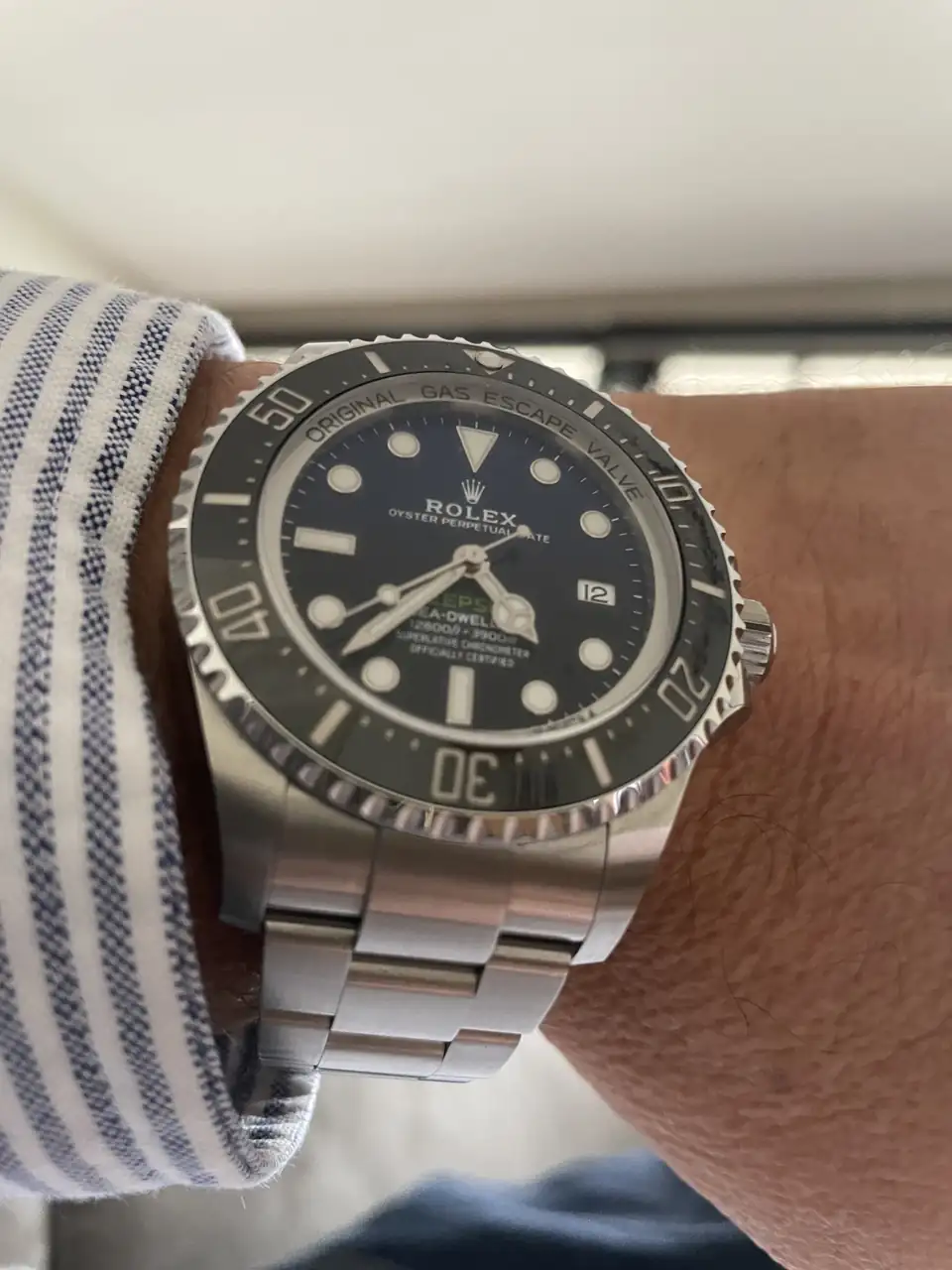 Después de un año, trasmitir mi satisfacción con él Sea-dweller, me parece una preciosidad, una maravilla de reloj, a pesar de su tamaño lo considero cómodo, con una presencia en muñeca impresionante, con empaque, las letras en rojo junto con la esfera mate tienen su encanto, un modelo poco visto, más exclusivo y con personalidad, muy versátil para el uso diario (incluso con traje) … en definitiva cada día más contento de tenerlo.
