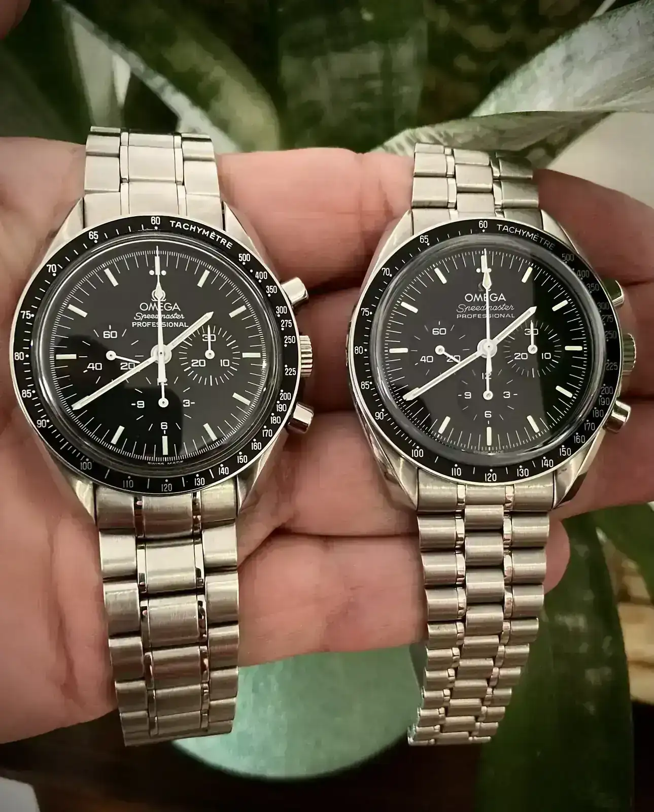 Una pareja con muchas similitudes y al mismo tiempo muchas diferencias. Que gran trabajo hizo Omega al renovar el Speedy con el 3861 respetando la esencia pero cambiándolo todo, hasta la caja, sin que se note. El 1861 precioso. Solo para Speedyadictos (jeje)