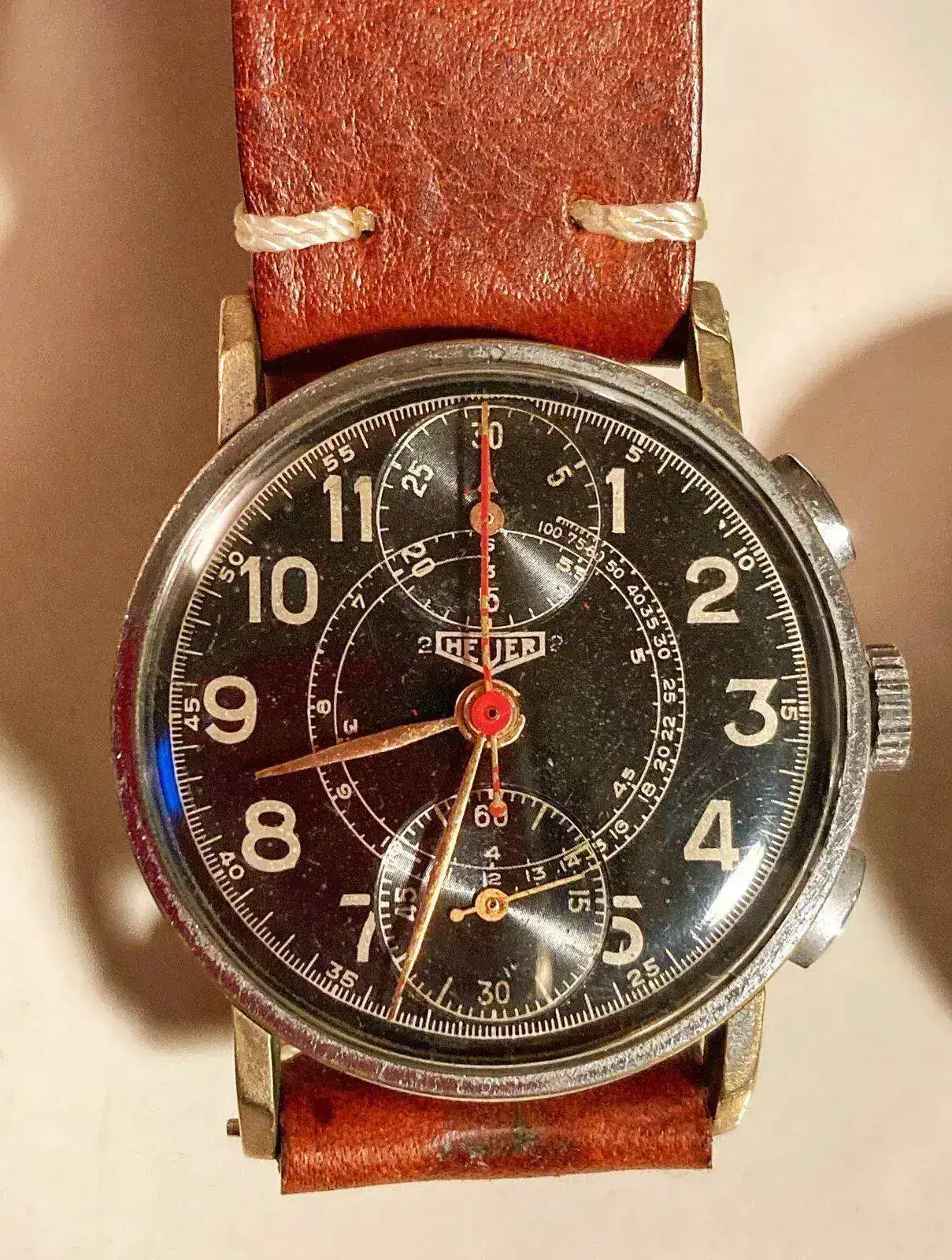 Uno de mis preferidos. Este Heuer Up&Down con la peculiaridad de que tiene los números 2 a los lados de la marca. Un reloj que tras investigar encontré que era militar y de 1938. A saber quién llevó este reloj, pero probablemente vistió una muñeca alemana.