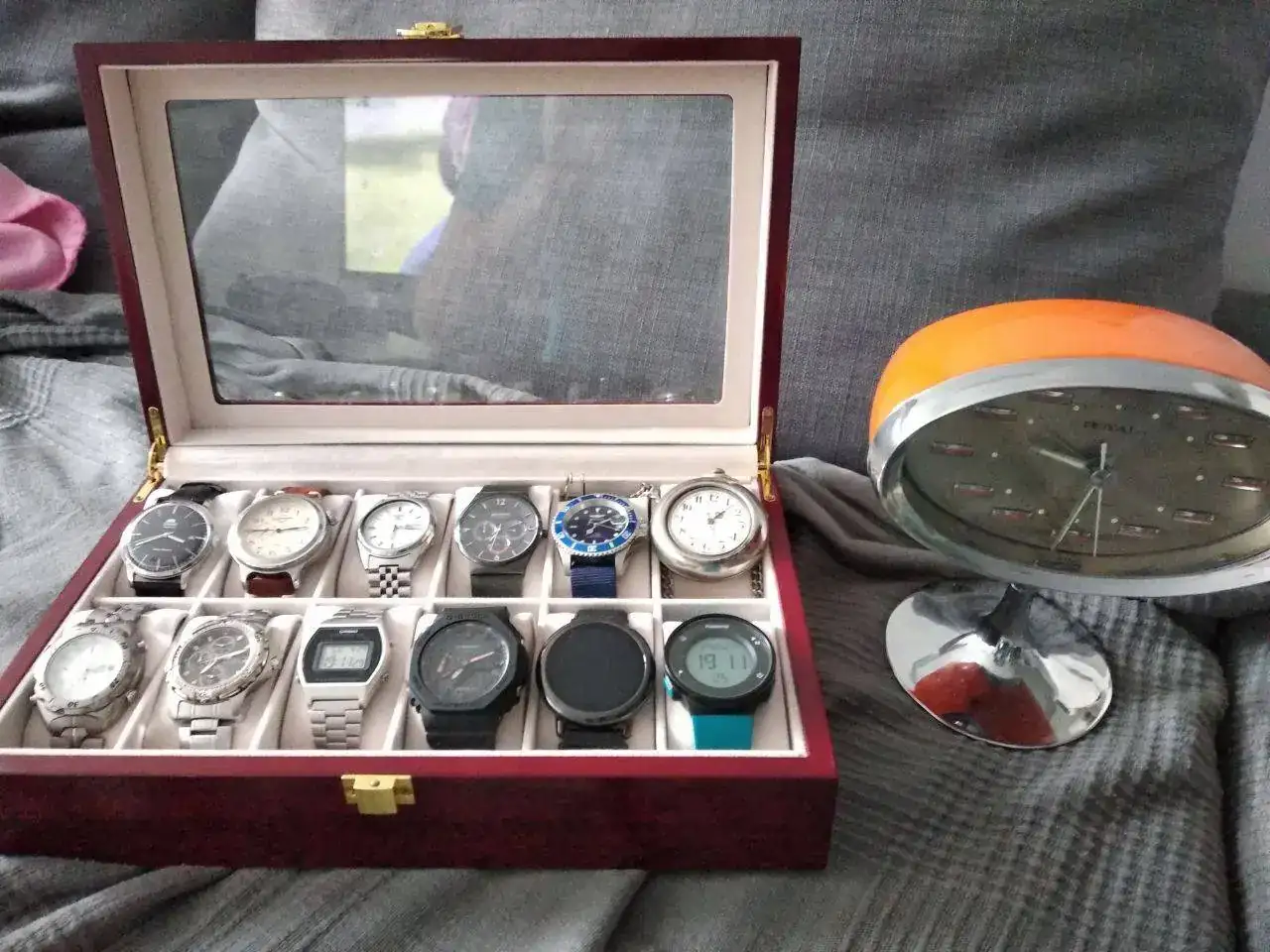 - Problema/trampa: Hay relojes con valor sentimental de los cuales no me voy a desprender pese a no significar mucho desde un punto de vista relojeril (Lotus, Citizen, Bering). El Lotus es el reloj de mi adolescencia, el Citizen fue de mi padre (además de ser tener una maquinaria bastante original con cronográfo y alarma) y el Bering fue el último regalo de mi abuela antes de irse. Esto me crea un dilema: ¿recibiré más relojes en el futuro por regalos/herencia? En ese caso ya veríamos que hacer... ¿quizá dejar esta caja de 12 para piezas con valor sentimental y centrar mi colección "real" en otra caja de 6?