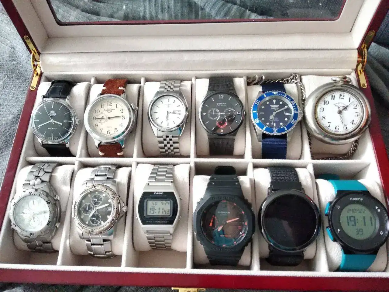 - Realmente la caja no está completa, hay truco (realmente quedan dos plazas libres). Tanto el reloj de Decathlon como el smartwatch de Xiaomi van a ir fuera en cuanto entren nuevos relojes sin necesidad de que estos salgan. Hasta ahora los he mantenido porque los considero tan relojes como los demás y porque cumplen su función. No obstante, el nuevo G-Shock se puede considerar un sustituto del reloj de Decathlon y el smartwatch, al ser un producto electrónico, mejor en el cajón de electrónica con sus cables, su cargador, etc... (por no decir que está obsoleto y más pronto que tarde tocará sustituirlo).