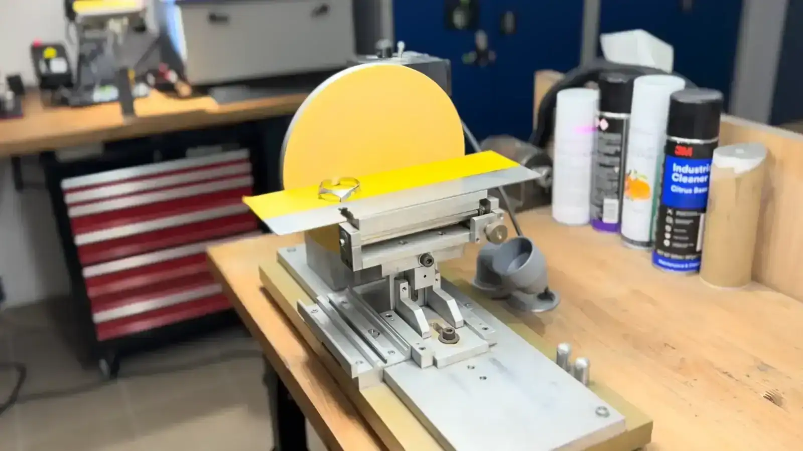 Lapidadora con su bandeja de trabajo de posicionamiento variable: