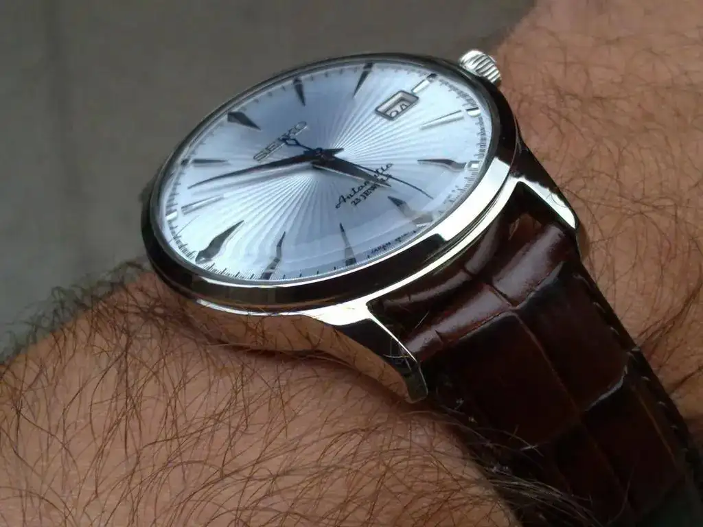 Por un lado y lo más importante el tamaño. He tenido relojes de 35 y 36mm que se me hacían más grandes en la muñeca. Creo que es por la forma que hace el bisel un poco más ancha que en estos otros que comento. Siendo este estilo de reloj “de vestir”, no quiero un reloj enorme, pero de verdad se me hicieron escasos los 38mm de caja del SARB.
