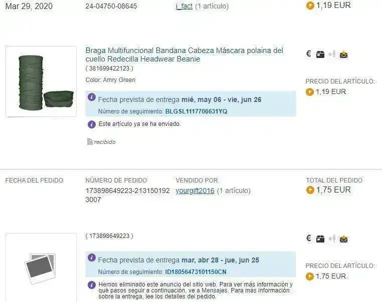 Hoy me encontré en el buzón 2 bandanas que pedí el 28 y el 29 de marzo por ebay ... woohoo!!