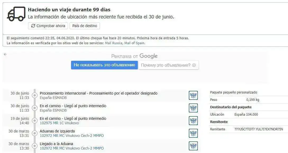 : Bien, ahora empieza un proceso frustrante de espera hasta que Correos decida procesar tu paquete. Yo tengo cuatro paquetes en Madrid, uno llegado el 22 de junio, otro el 26 y dos el 28 de junio. Todos ellos todavía no aparecen en la web de Correos...