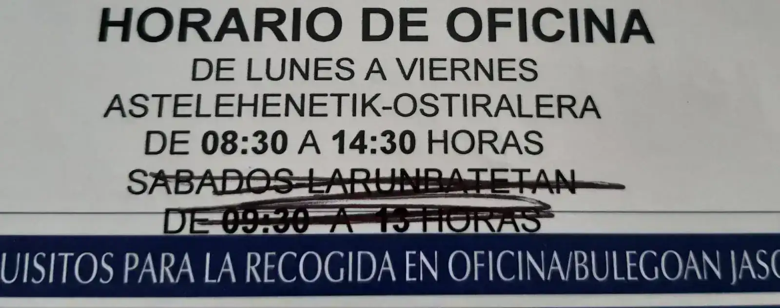 Como podéis ver, a su horario de todo el año en el que solo abren por las mañanas le han tachado el sábado. Y así desde hace tiempo.