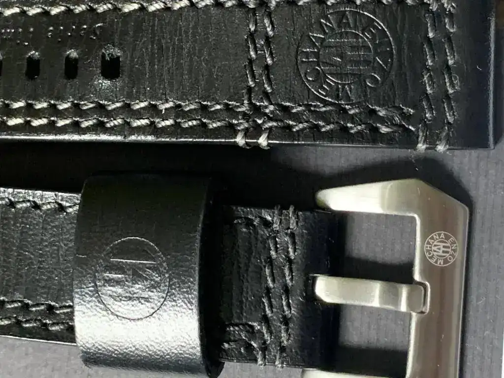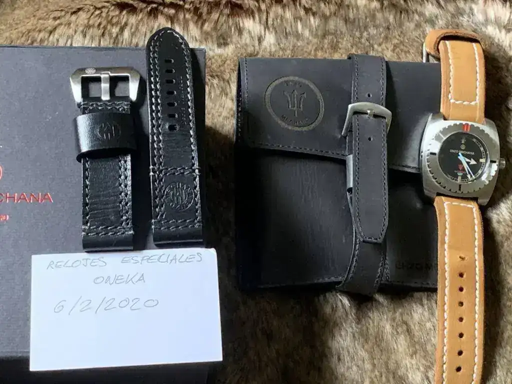 Correa: Ártesanal marrón clara y original EM negra con bucle ardillón firmado