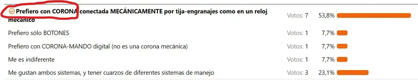Y ahora me gustaría conocer vuestras opiniones y argumentos respecto a este tema de si la corona es conveniente o no en un reloj de cuarzo. La mía es claramente que no, que es un anacronismo, y si es por estética, se puede poner una corona "falsa". Pero quiero conocer vuestras opiniones y argumentos, que seguro que aprendemos unos de otros y de nuestros diferentes puntos de vista.
