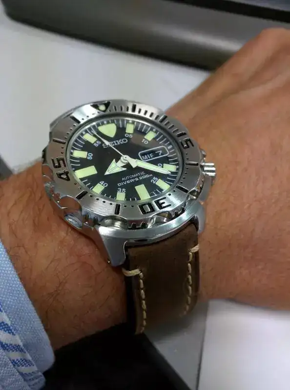 Entre el bisel de acero tan grande y el armis forma un mazcote, pero con la correa de cuero se le ve otro aire.