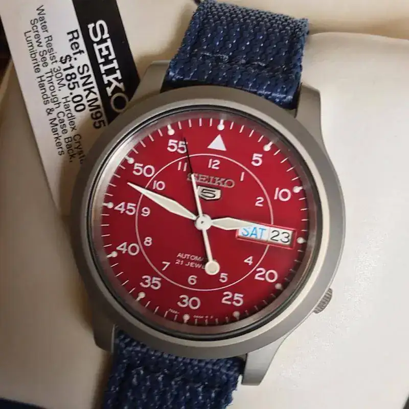 Caminando por los suburbios "internetcinos", me topo con este ejemplar. Realmente con ese fondo rojo jamás lo había visto. (Asumo que ustedes que son mas versados en el tema, si).. Me gustaría saber si de pronto en Europa es mas popular, o tal vez fue popular en algún momento y ya no lo és, o cualquier aporte que puedan dar sobre el SEIKO SKNM95 (De verdad que me llamó la atención) No sé si para adquirirlo, o es tal vez porque no sabía de su existencia.
