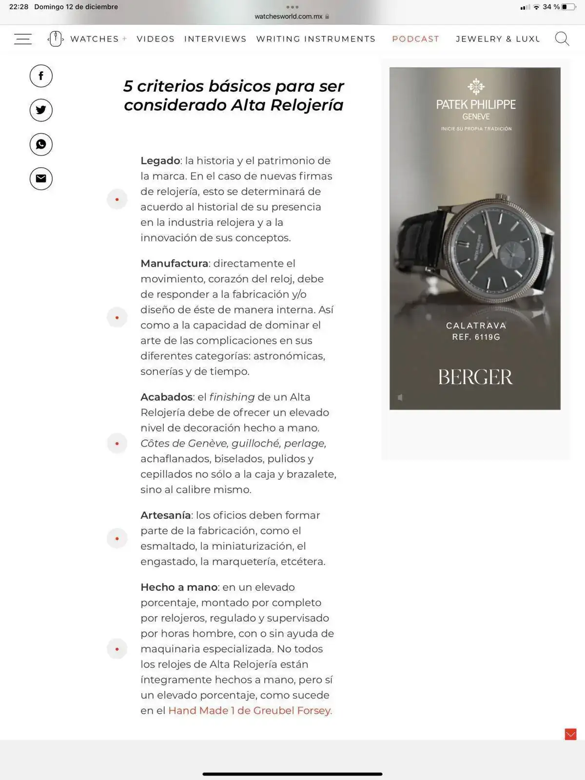 Estoy absolutamente de acuerdo contigo pero, como dije, mi duda surge al compararlo con modelos en los que, al parecer, no existe ninguna duda sobre su catalogación AR como los calibres de un Calatrava o de un Máster Control donde sus acabados "manuales" no parecen ser mejores que los del Neomatik.Seguramente no lo sea si sus acabados en las piezas y decoración no hayan sido realizados a mano. Si fuera así, desde luego por las características que das tendría que entrar por definición como AR. Si no entrase como AR sería por eso que te indico, puede estar ensamblado a mano pero también tiene que tener la mayoría de sus piezas tratadas a mano. Eso por definición general. Luego ya entramos en aguas fanganosas con como cada uno interpretemos esa definición para meter un modelo u otro.