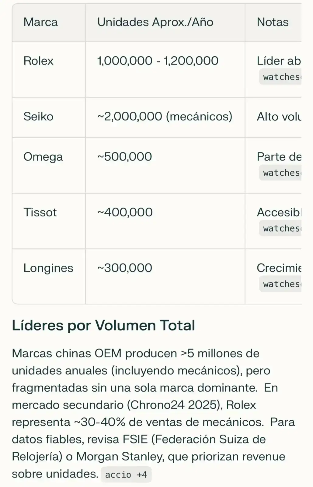 Pero en Swatch por lo menos el 90% serán cuarzos, y en Tissot, a ojo, teniendo también en cuenta la relojería femenina, diría por lo menos la mitad. Si siguiese siendo líder, sería casi empatado con el millon y algo de Rolex.