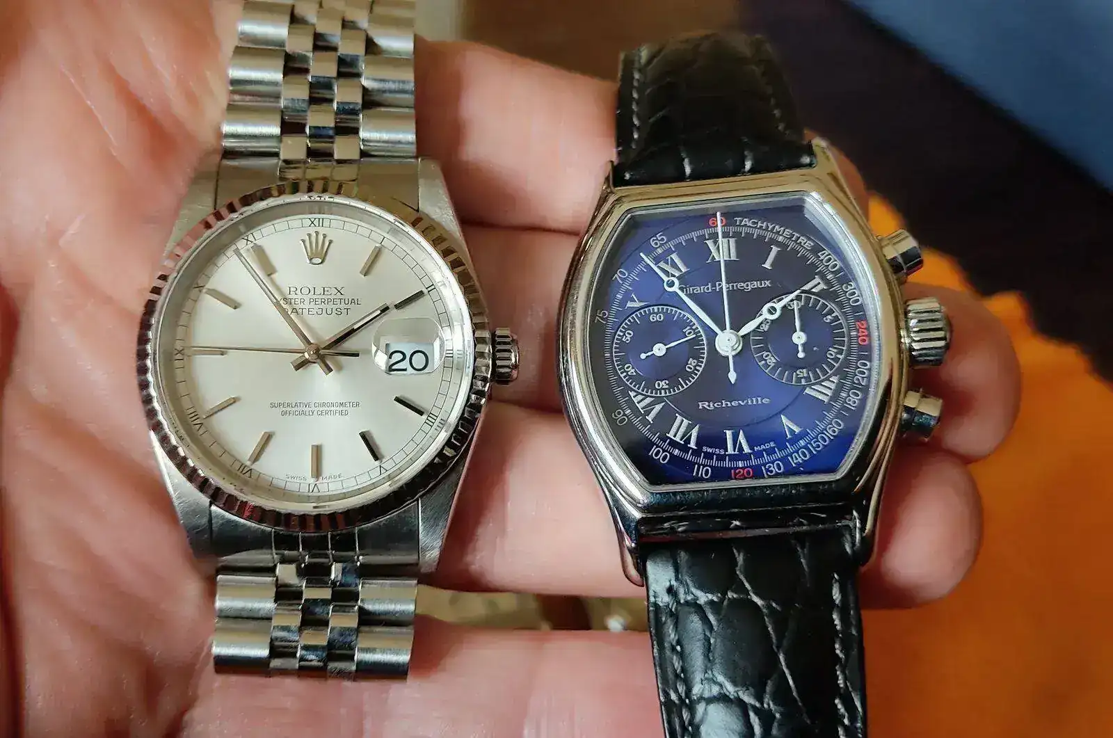 Son piezas que, como el Zenith de 38.5 mm, o el JLC Reverso de 27x 39 mm, el GP similar y el Datejust de 36 mm. Relojes que para muchos serán demasiado pequeños, para mi son perfectos.