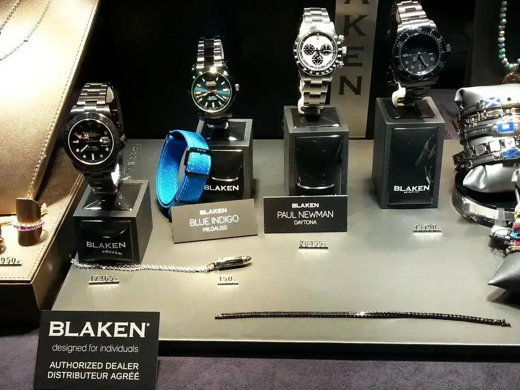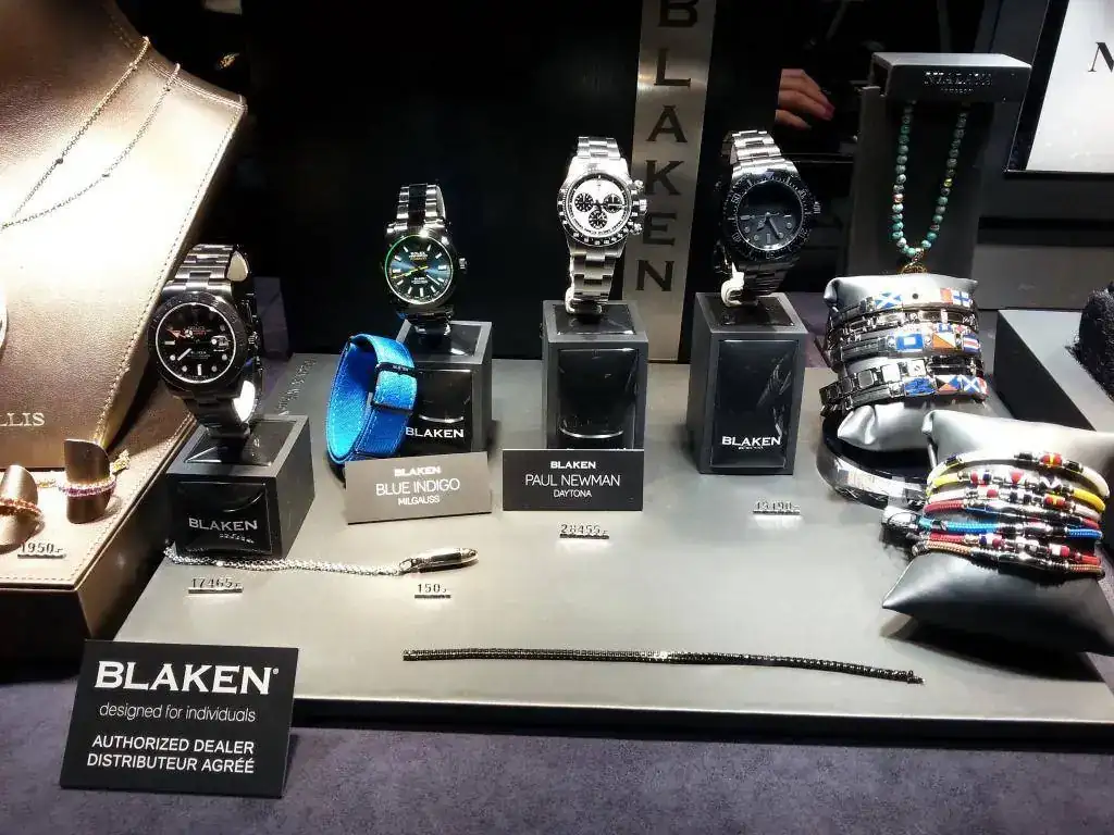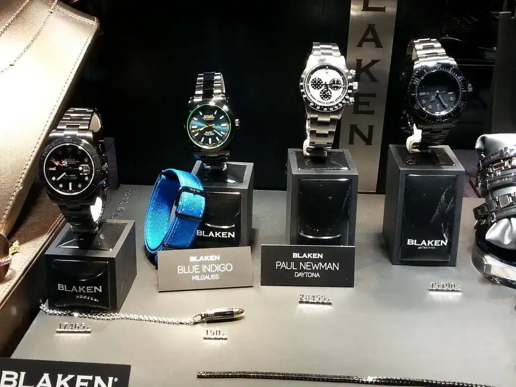 En su escaparate mucha joya y veo unos cuantas piezas de alguna marca que aprovecha la estética Rolex. No iba a prestarles mucha atención, cuando me fijo en los precios marcados y luego en la marca. "Blaken. Designed por individuals"