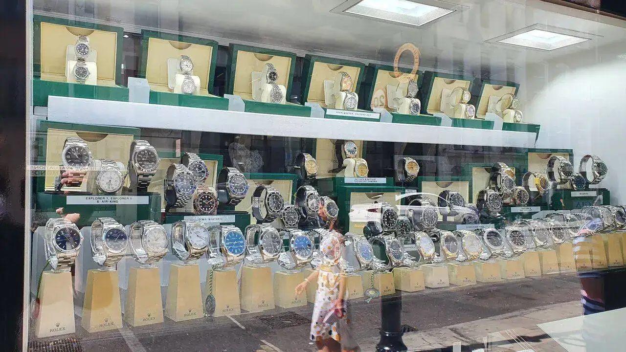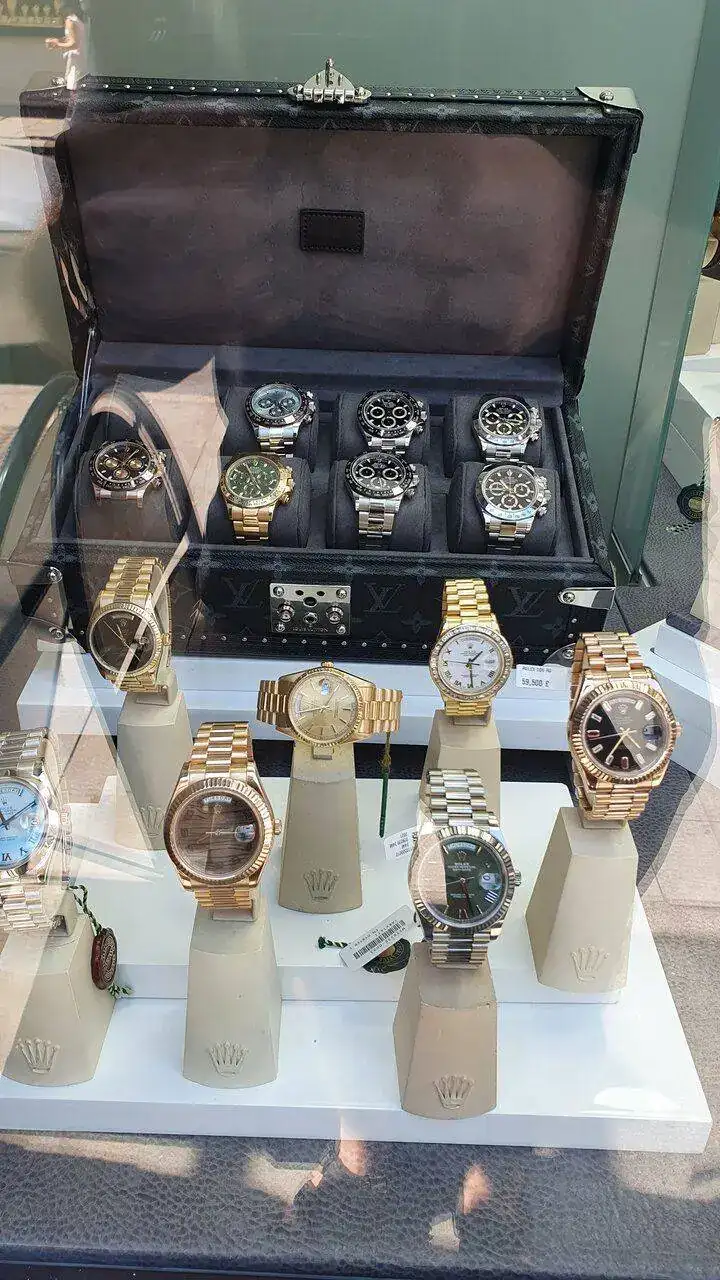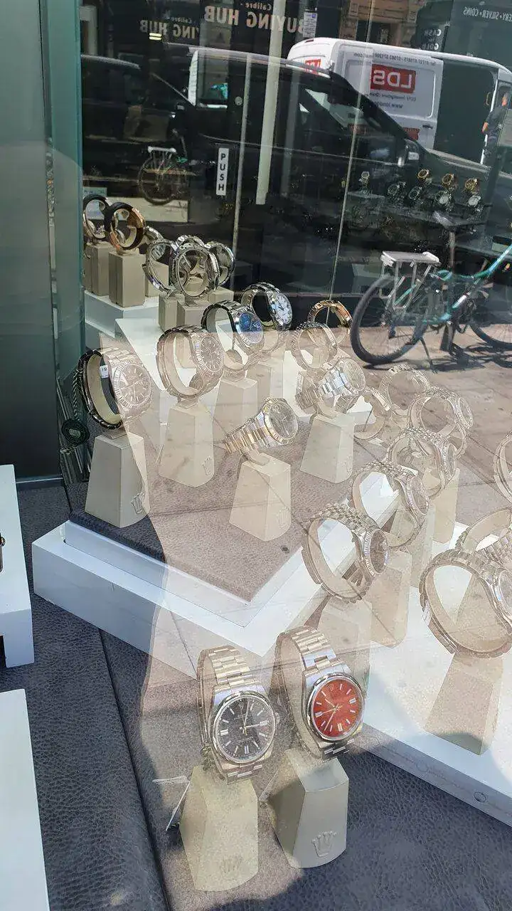 He de comentar que a mi amigo no le interesa en absoluto nuestra afición por los relojes, pero como es un tío fantástico, pues escaparate que ve, foto que me manda. Le he dicho que tenga cuidado con el personal de la tienda no sea que se mosquee.