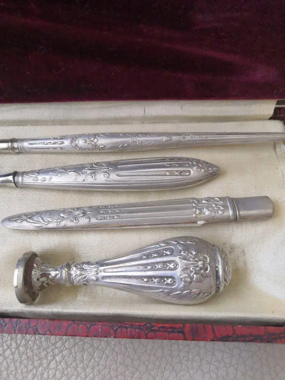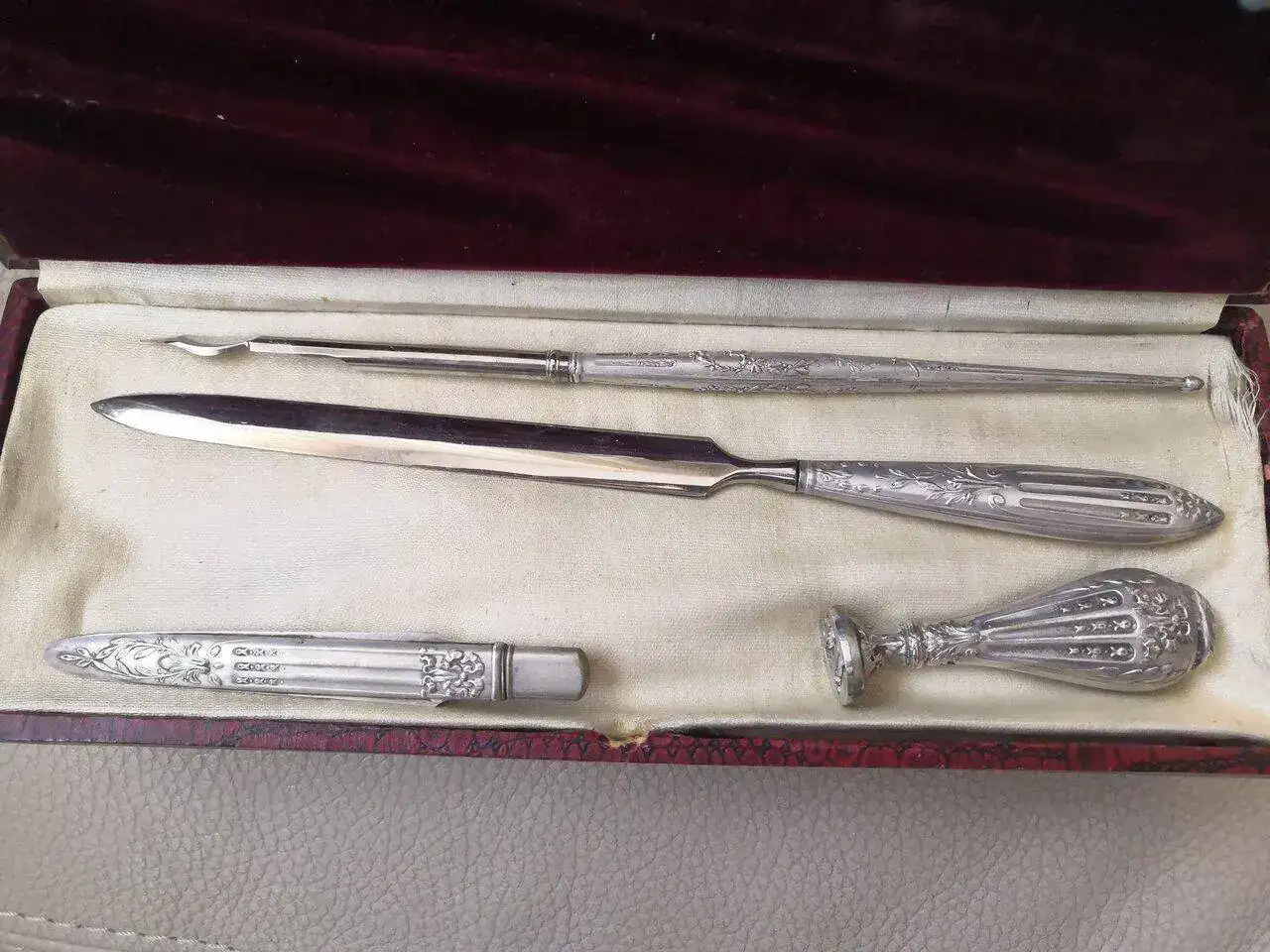 Vendo escribanía, creo que de finales del siglo XIX, puede ser algo más antigua o un poco más reciente. Con su estuche original.