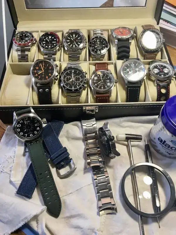 Pues ese feliz momento del día es cuando tengo un rato libre, saco mis trastos y juego a ser relojero. Y no es que lo sea ni entienda, que por eso digo juego ya que mis conocimientos se limitan a cambiar correas, poner brazaletes, limpiarlos para dejarlos bonitos y poco más. Bach o Vivaldi me acompañan a veces, pero no es condición sine quanum. Últimamente me gusta más el silencio y quizás el hecho de estar hablando todo el día en mi profesión de English teacher tenga algo que ver. No mucho más que decir, tan solo quería compartir este ratito de relax con la multitud silenciosa del foro de mis amores. Seguid ahí porque sois geniales.