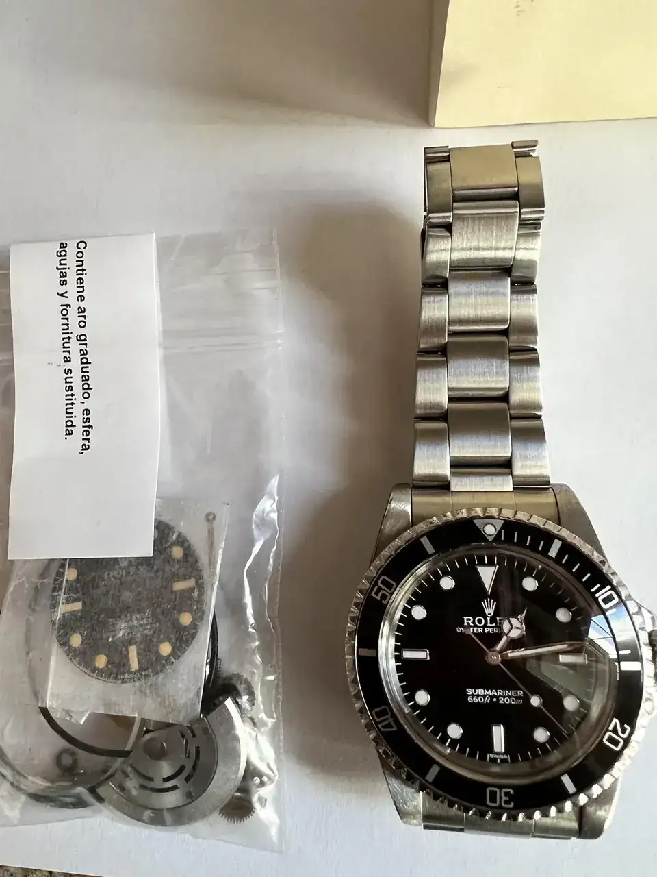 Es cierto que la reparación Rolex aporta una garantía sobre el trabajo y el origen de las piezas.... pero la esfera, agujas y bisel de servicio (en luminova bien brillante) le restan todo interés y valor de comercial y de colección al reloj... y hace que sea muy difícil de vender.