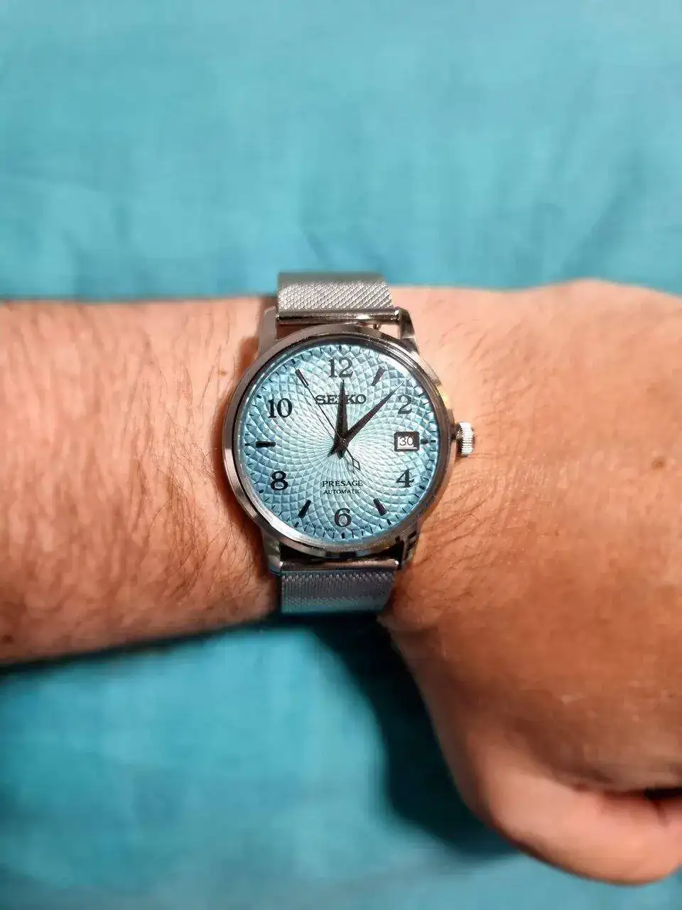 Dejo a mi mujer en la cama, pillo coche y me voy como aquel que tiene cita con su amante.. me “divierto” con el coche ( guiño al post que recientemente borre en pitstop ) miro crono y me sorprendo a mi mismo , me he pasado …. 🤣 tardo menos de lo que creia y en un plis plas estoy en el centro comercial comprando un tiffany … la dependienta me dice que no lo tiene !!!! Horror, empiezo a sudar , como que no ? En la web me sale que esta disponible con recogida en el dia , No no , no lo tenemos… mire usted por los cajones no sea que…. Abre los cajones y ahi esta mi tiffany… fantástico, la web no se equivocó, saco de la cartera mi tarjeta y me dispongo a pagar mucho menos dinero de lo que estamos acostumbrados en el foro… y que ??? Me mola mogollón , es una chulada de reloj con un color de esfera que enamora , oh NO !!!! Otra vez enamorado No y es que todos los veranos van a ser iguales ? Miro el reloj , y me doy cuenta de que no se trata de una femina si no de un reloj… menos mal !!! Mi parte emocional❤️ a salvo 😉 mi parte racional no tanto, aunque tengo ganas de volver a conversar con mi querida psicologa 😍 en fin… to loco creo que me merezco un buen desayuno , ummm no me apetece tortilla, hoy estoy dulce ( tostada con mantequilla y mermelada de fresa junto con un café bombón,Si estoy romántico, seguramente fue por ver ayer noche grease en la tv , joder pienso !!! Estoy echo todo un desactualizado , hoy todos tiran de tinder , badoo , grindr para quien le guste otras temáticas y yo mirando grease , escuchando eros ramazotti y comprando relojes que me llenan el corazón ♥️ sin pensar ni tan siquiera en si es un reloj bueno o no bueno… llegados ya a esta etapa de colección, me da lo mismo llevar un reloj de miles de euros que uno de 20, lo que realmente me importa es que me transmita emociones y este desde luego me las transmite….