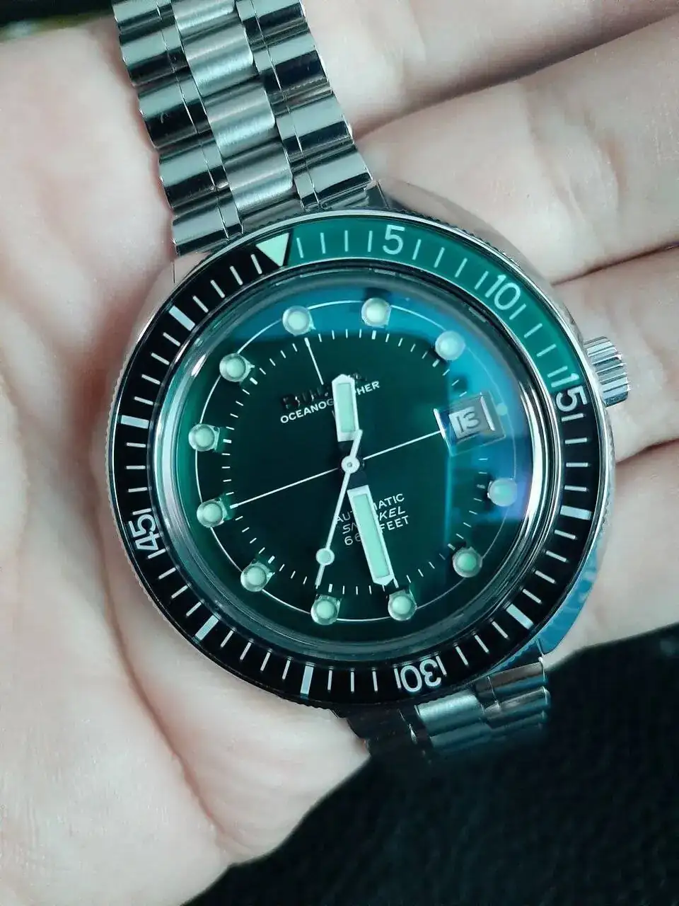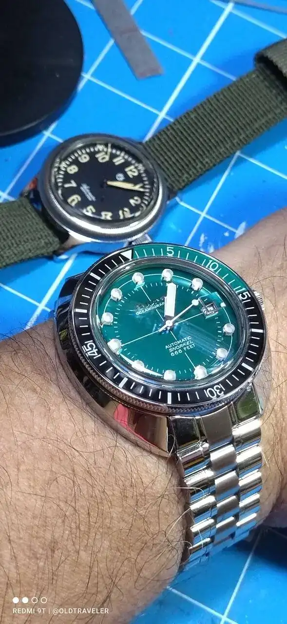 Esta es una foto de "archivo", pero hoy lo he sacado de la caja, me lo he puesto y me encanta la sensacion, su brazalete es muy comodo y le perdono el exceso de brillos, y estoy dispuesto a aceptar los inevitables "pelillos" y demas cicatrices de guerra, las cosas estan para usarse.