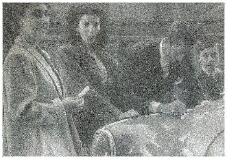 La archiconocida foto del torero mítico MANOLETE firmando un autógrafo a unas fans encima del capó de un precioso ¿Buick ?