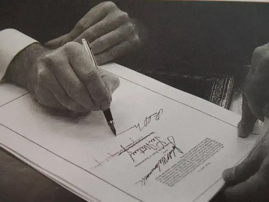 Firmando un ejemplar en la feria del libro, aquí se ve que no lleva la montblanc no sea que se la descuiden