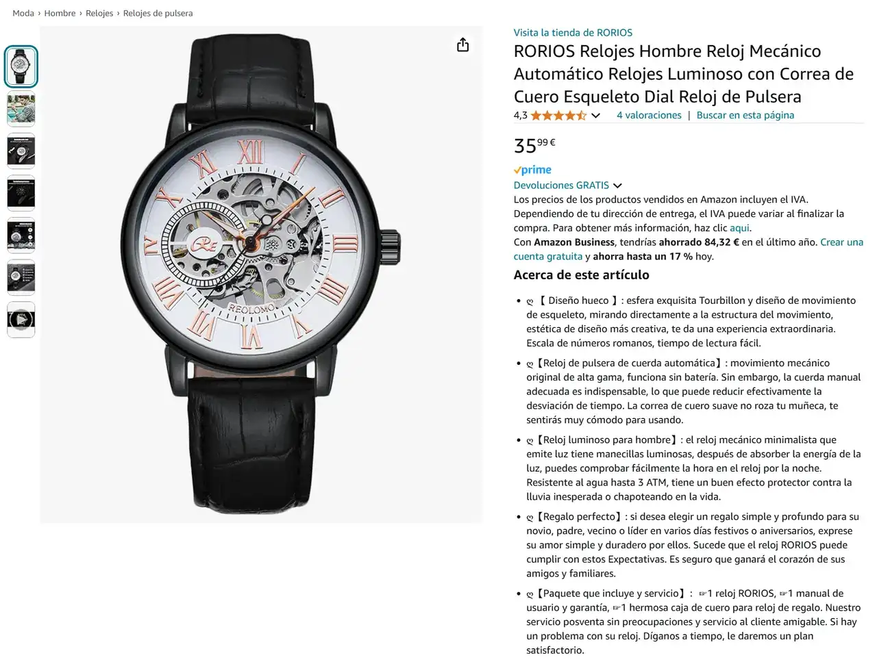 Me ha llamado la atención, y no es la primera vez que me pasa, que echo un vistazo al anuncio de un reloj en una página web de venta generalista, y me encuentro con que las especificaciones no son exactas o son contradictorias.