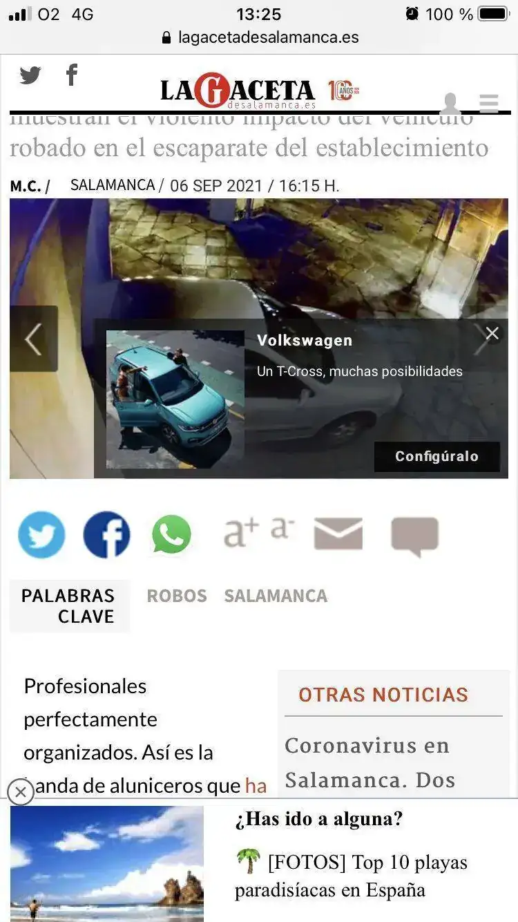 Las imágenes de las cámaras de seguridad muestran el violento impacto del vehículo robado en el escaparate del establecimientowww.lagacetadesalamanca.es