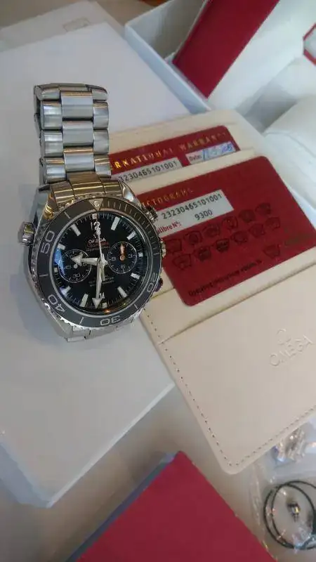 Saco a la venta mi Omega Planet Ocean Chrono 45.5 en un estado diría de reestreno. El reloj no tiene marcas aparentes o golpes y la marcha es perfecta. Fue adquirido en 2015 como viene sellado en su documenación. En estos calibres Omega ofrece 4 años de garantia pero, como recienemente lo he recibido de revisión completa en SAT Omega, el reloj cuenta con 24 meses de garantía ( Hasta Enero de 2020). Entregaré documentación que lo acredita.