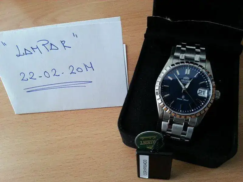 Vendo este espectacular ORIENT CER1P004D0, con preciosa esfera color azul, en un estado de autentico reestreno, solo tiene leves pelillos que encuentras a contra luz y mirando mucho...