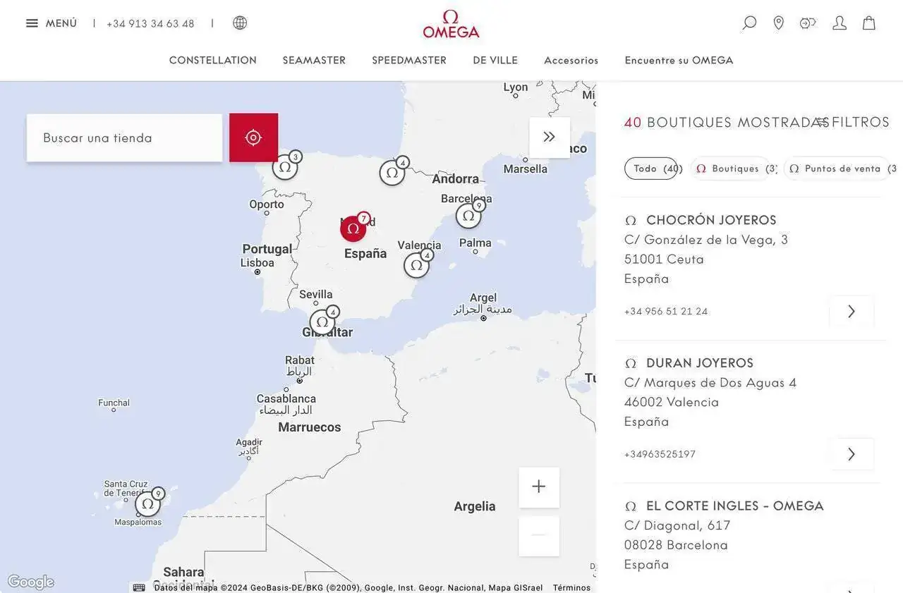Chocron sigue apareciendo como DO en ambas web. La de Madrid y Marbella no aparecen en la web de Omega, pero se de sobra que sin problemas te lo llevan a la tienda que necesites y sino online.Asi es. Realmente no necesitan nada mas. Emho, creo que quedaran los Rabat y grandes de turno, por tener visibilidad y presencia al lado de otras grandes marcas.