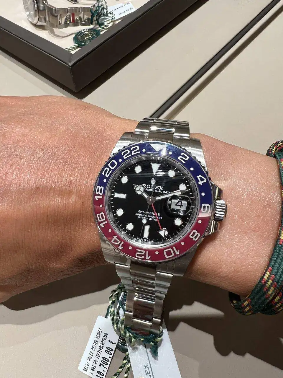 .Espectacular con bisel oro blanco y brazalete Oyster.Joder que rico ese Pepsi. Tremendo ver el pvp y el precio de reventa 🤣
