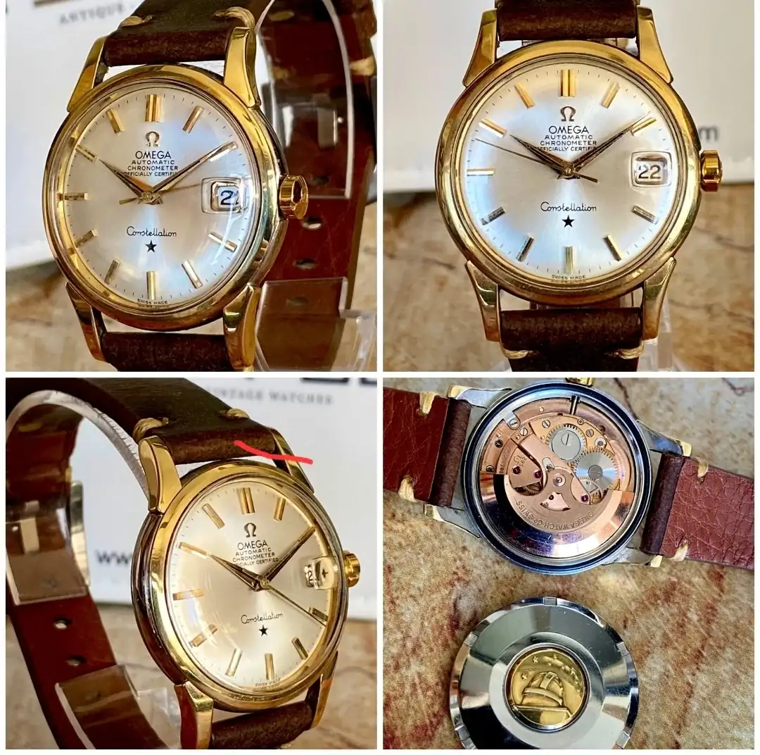 En un primer momento estaba tentado de comprar un omega constellation vitage. Lo vi a muy buen precio en una joyería y además con 1 año de garantía. Chapado en oro, años 60, Calibre 562, 34 mm + corona firmada X 42 mm, el maravilloso sello de Constellation, oro 18k, correa piel legítima… pero soy un cagueta y comprar relojes vintage me da miedo, son muchos años de reloj.