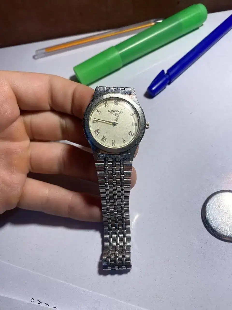Buenas, hoy me llegó este reloj que compré por internet... segun el vendedor, un longines (tambien me habia dicho que era automático), lo primero que hice al llegar fue abrir el paquete.