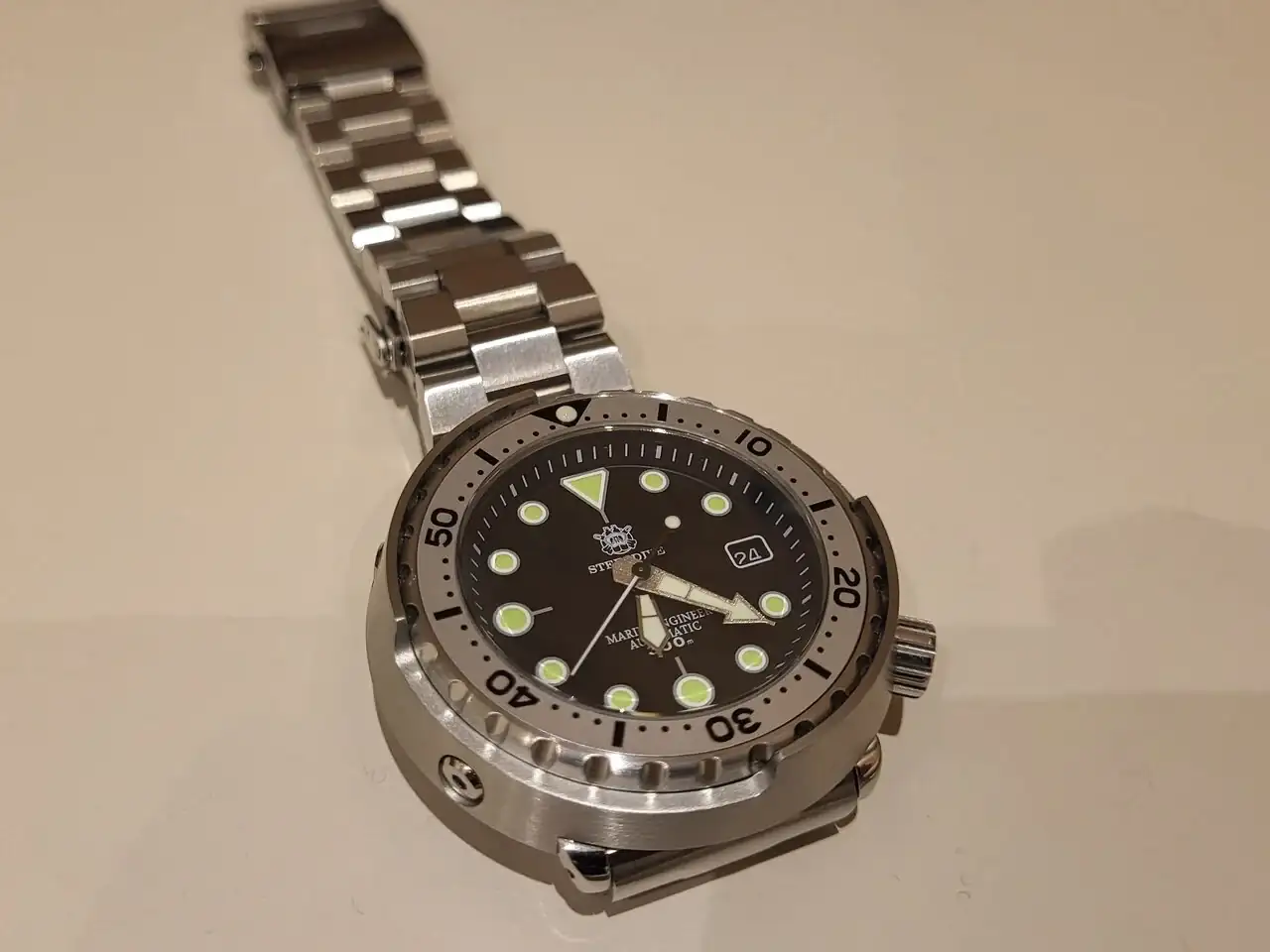 El tema es que para no marear a estos dos relojes, decidí ir a por un Steeldive Tuna y hacerle el mod. Lo preferí al Addiesdive por el fechador negro, aunque también he de decir, que siendo calidades similares, el nombre Addiesdive me tira menos. Además, ninguna de las dos marcas es muy buena en la transparencia del cristal, por mucho zafiro y AR que pueda llevar. Solo con ponerlos al lado de un Seiko tortuga con hardlex, la diferencia de transparencia del cristal es muy, muy notoria