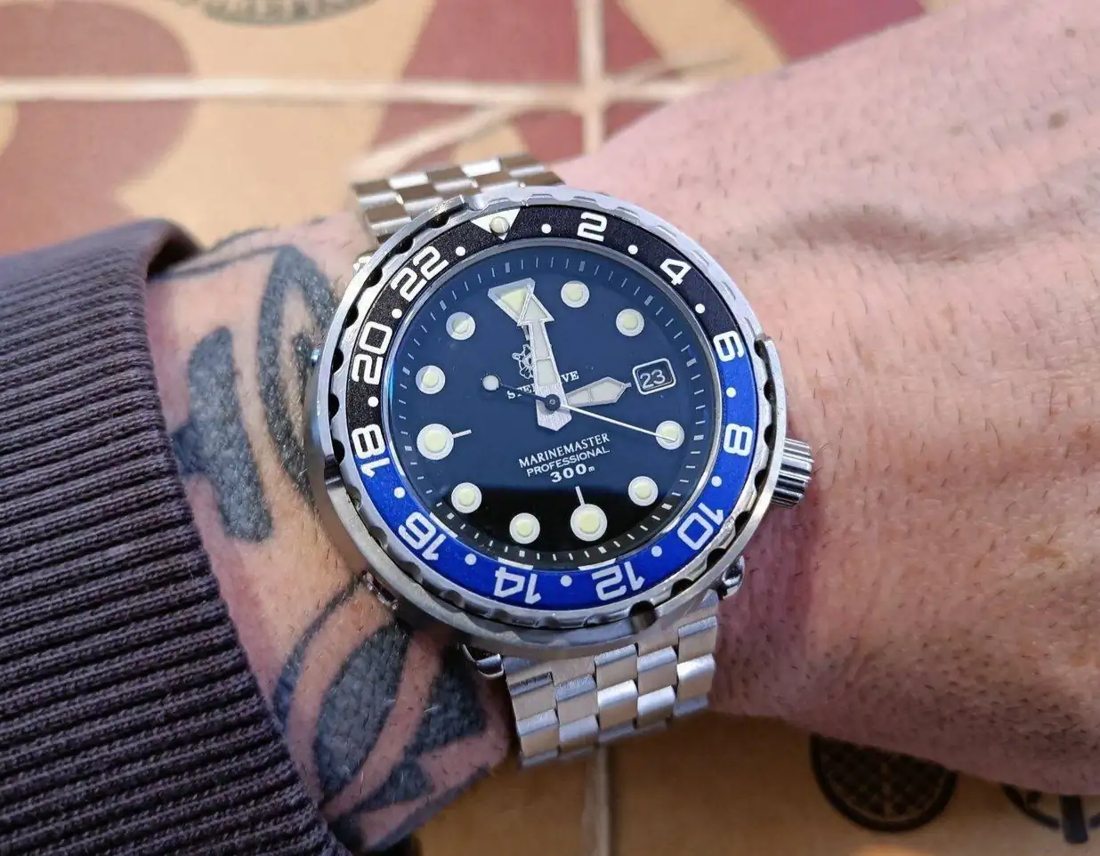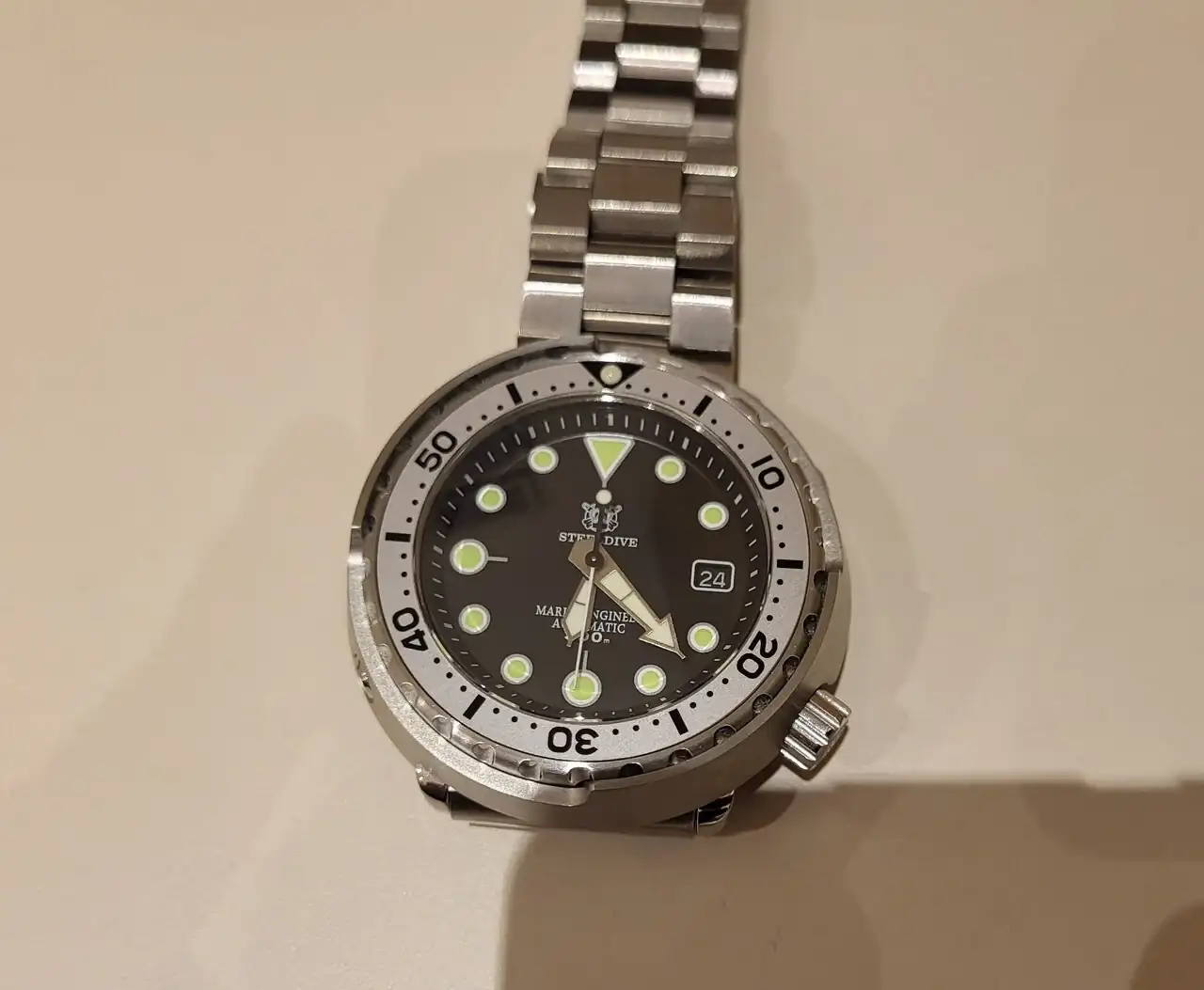 El caso es que me gustan mucho los Tuna. Tengo dos Seiko 300m, uno con insert negro y otro insert acero, y he tenido seis o siete copias, u homenajes como quieran, de Addiesdive, Steeldive, San Martin y un King Tuna del foro vecino, para hacerles mods con los inserts. Al final me quede con los Seiko solamente