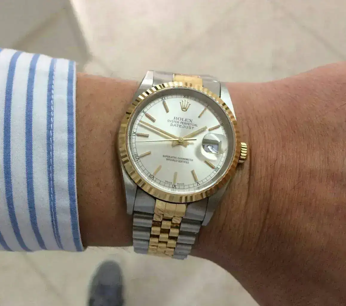 Hace unas décadas, por el motivo que sea, se estilaban los relojes más pequeños. En algunos casos modelos,que una vez puestos, a mi me resultan de tamaño cadete.