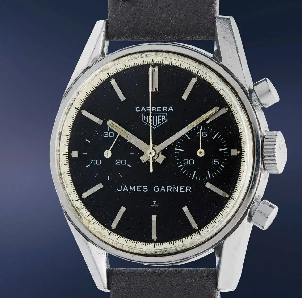 pace car del evento en tres ocasiones distintas, generalmente con este Heuer Carrera en la muñeca. Según Gigi, era su "reloj favorito" y se ve a menudo en imágenes de la época y en episodios de The Rockford Files.