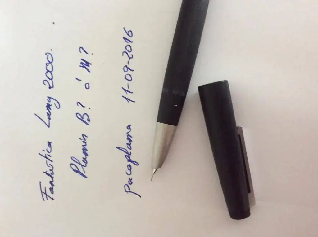Está en perfecto estado, usada, pero sin marcas ni nada que haya visto a la lupa. No puedo decir el punto que es, yo creo que es un B, ya que no lo pone en ningún sitio de la pluma, y no me atrevo a desmontarla. Pero sinceramente creo que es un B o un M muy grueso. Dejó muestra de la escritura para que se analice por los interesados.