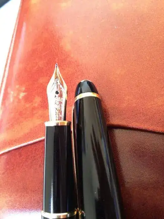 Su estado estético es perfecto y su funcionamiento también con un flujo de tinta constante, un trazo generoso (diría que es un punto M, las palabas que aparacen en las fotos estan esritas con ella) y se desliza en el papel como la seda, una delicia de verdad.