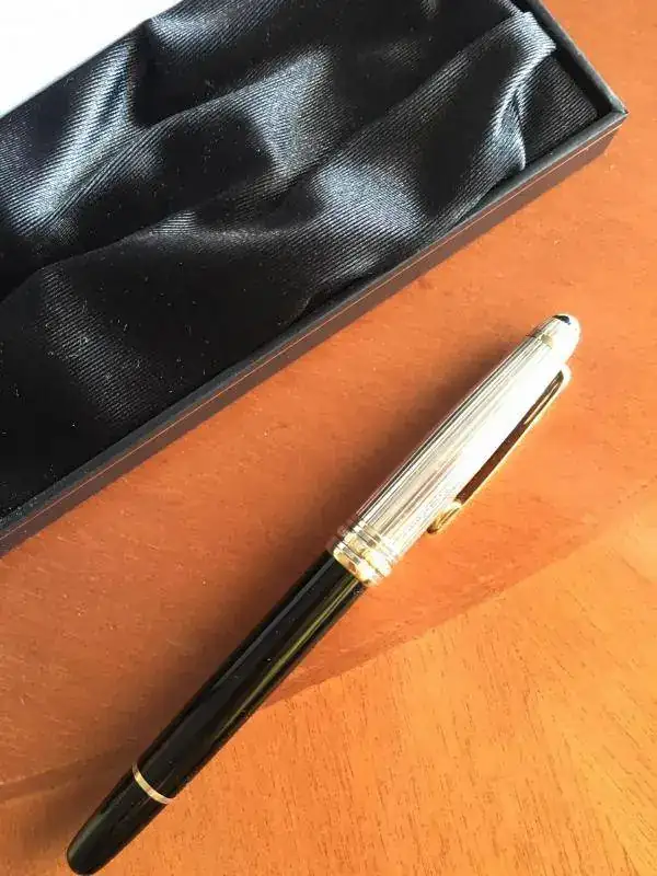 Vendo estilográfica Montblanc Meisterstuck capucha de plata de 925 milésimas, con convertidor de émbolo, plumín artesanal de oro de 18 quilates con incrustaciones de rodio y trazo medio.