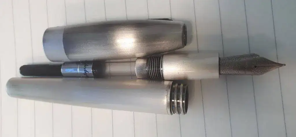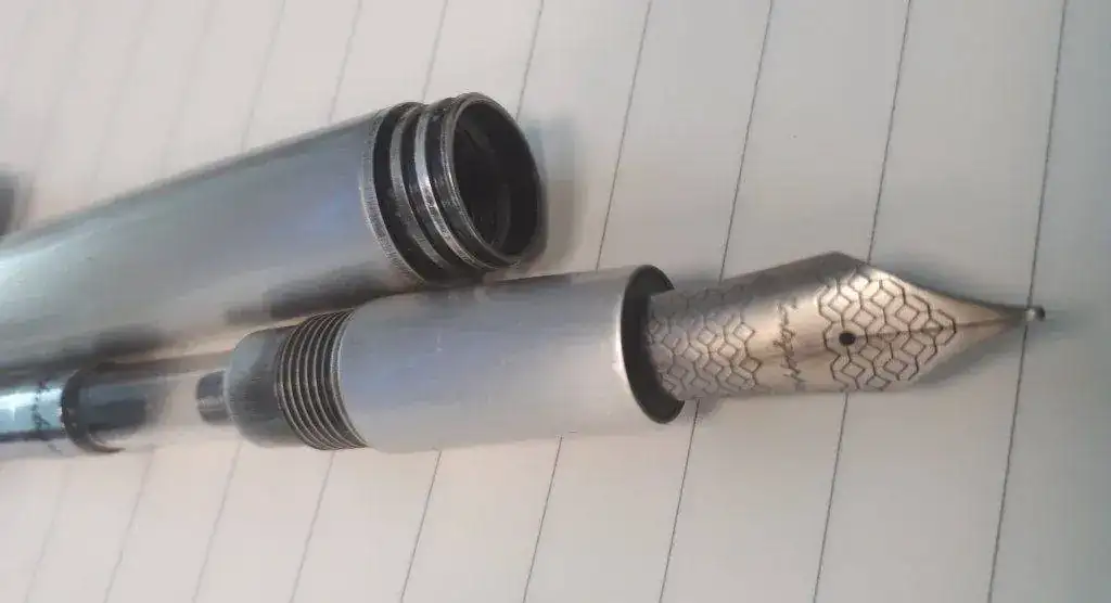 Fabricada enacero bruñido, con plumín también de acero en punto M.