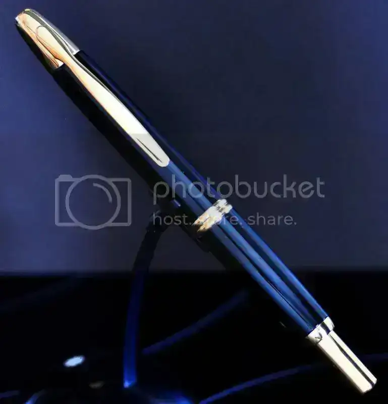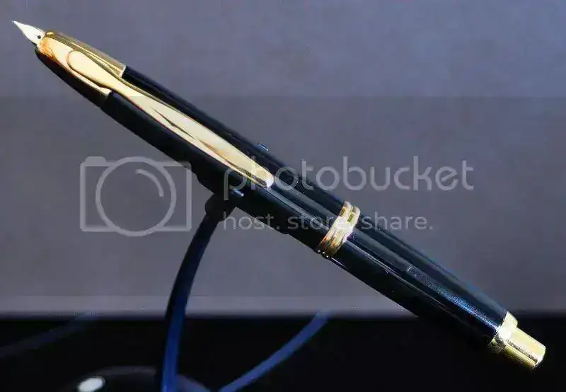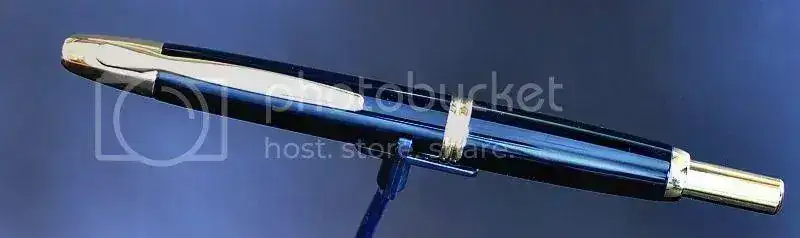 Para los que no conozcáis el modelo, se trata de una pluma con plumín retráctil por mecanismo de pulsación... en resumen, accionas el botón superior, como si de un bolígrafo se tratara, y el plumín aparece en la punta de la pluma para su uso. Es la única pluma que se puede utilizar con una sola mano.