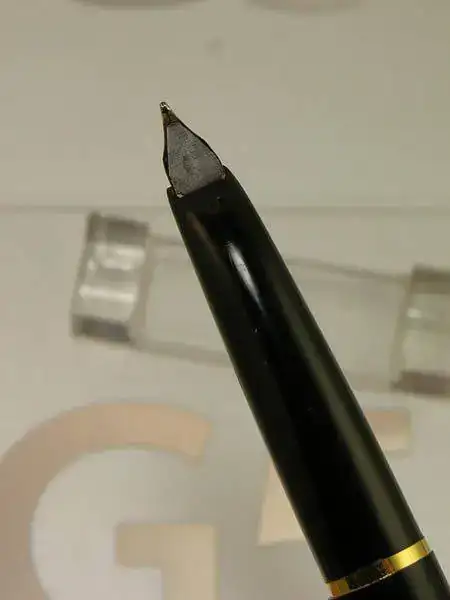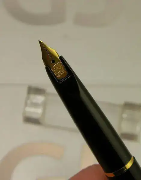 El plumín es de tipo carenado, plano con las aletas pequeñas y dobladas, con un diseño claramente inspirado en el tipo Wing-Flow. El alimentador es también plano, de ebonita y carente de branquias, destacando el orificio de respiración de sección cuadrangular en su base. El punto es suave, de trazo medio a fino, sin flexibilidad (IR>5) pero con efecto muelle típico de los plumines tipo Wing-Flow, y en general todos los plumines con aletas plegadas en ángulo, que aporta una sensación de amortiguación muy cómoda durante la escritura. El material es una fina lámina de oro de 18 kt que muestra el nombre del modelo (P15) insertado en la banderola del logo de la marca junto a la indicación de pureza del oro.