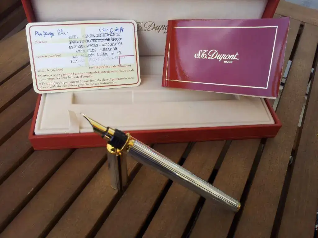Vendo PLUMA DUPONT MONTPARNASSE plateada (no se sí es de plata). Muy poco uso. Comprada el 24/6/14 en establecimiento oficial. En garantía. 14 cm cerrada. Tiene su dotación completa: caja, cartuchos, convertidor, libro instrucciones y. Tarjeta de garantía.el precio que le pongo es de 225 euros. Envío por agencia, incluído en el precio.Valoraría cambio por estilográfica que me gustara de similar valor.