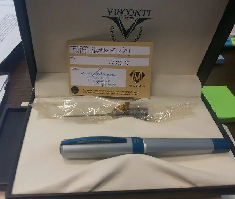 A la venta estilográfica Visconti Opera, modelo Metal Speedboat, dealuminio.