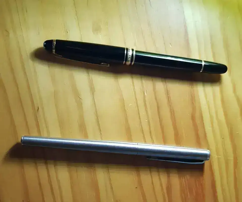Soy un fan de la Parker 45! Tengo varias, las cargo con diferentes colores para usar en mi trabajo, en la confección de lista de tareas (la verde va con tinta verde, la roja con Rojo, etc etc, ya que uso el sistema de semáforos para distinguir prioridades).Yo para la primera quincena y en general para todo el mes una Parker 45 y una Pelikan M205 roja.