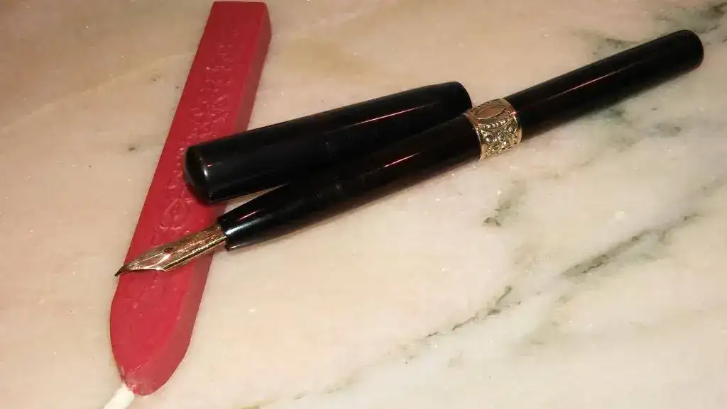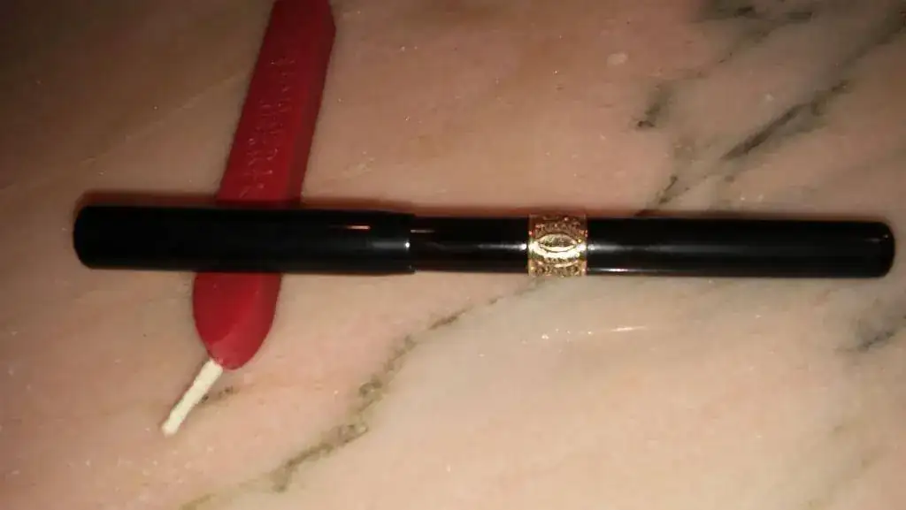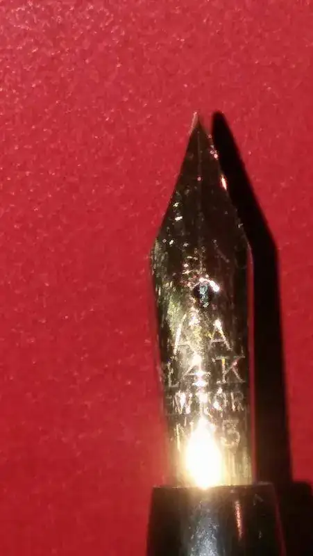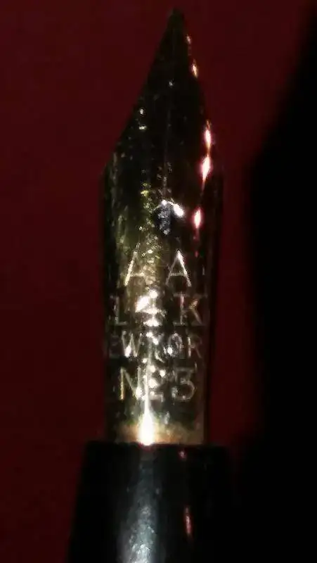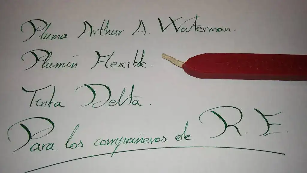 Esta semana una plumilla con más de 110 años. Una Arthur A. Waterman; con orificio de respiración en forma de trébol; y con adorno central. Se encuentra en un excepcional estado de conservación. Es una auténtica delicia su escritura. Unas fotillos con el móvil. Fotografío también una barrita de lacre