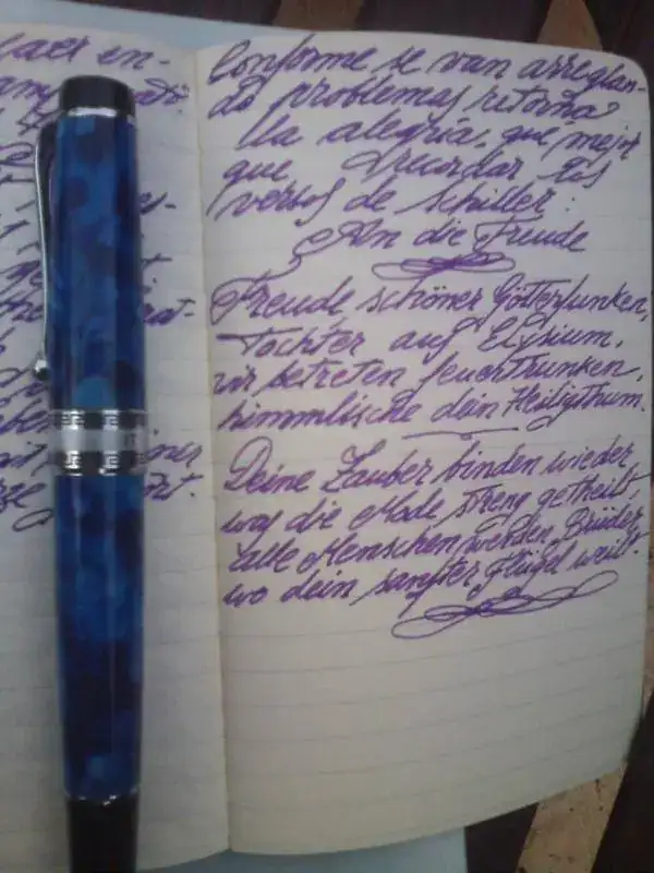Pues yo llevaré la Aurora Optima con tinta Pelikan 4001 violeta, un cuaderno cosido Moleskine y las primeras estrofas del Himno a la alegría de Schiller que vale la pena recordar de vez en cuando. Feliz semana.CAM00288.webp
